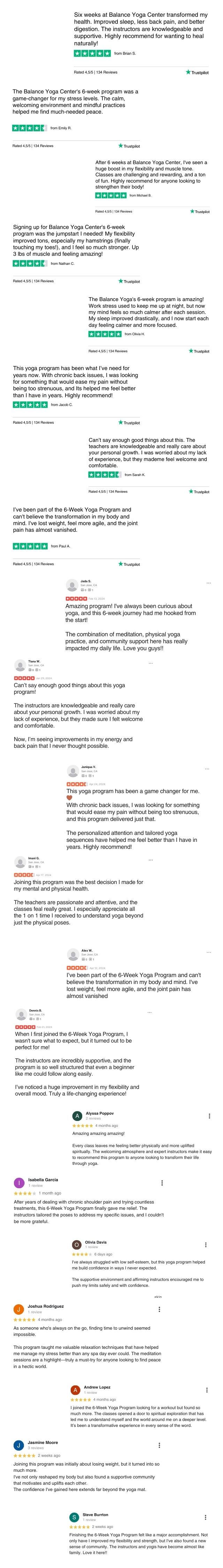 Research has shown that it takes about a month to form a new habit. Our 6-week yoga program supercharges this process, providing you with all the tools and support needed to reshape your body and change your life.